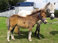 Gruppe Dt. Partbred-Shetlandpony unter 87 cm als Siegerfohlen mit der